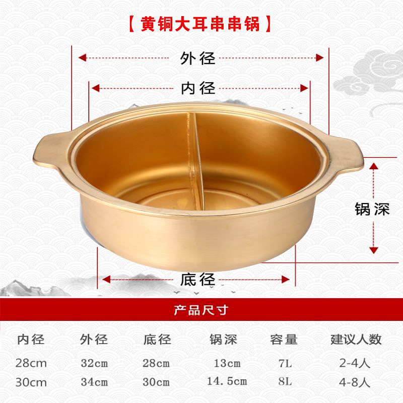 Pure Brass Commercial Hot Pot pot thickened string Mandarin Cookpot oven Gas Furnace Versatile Custom-made Three-Taste Pan