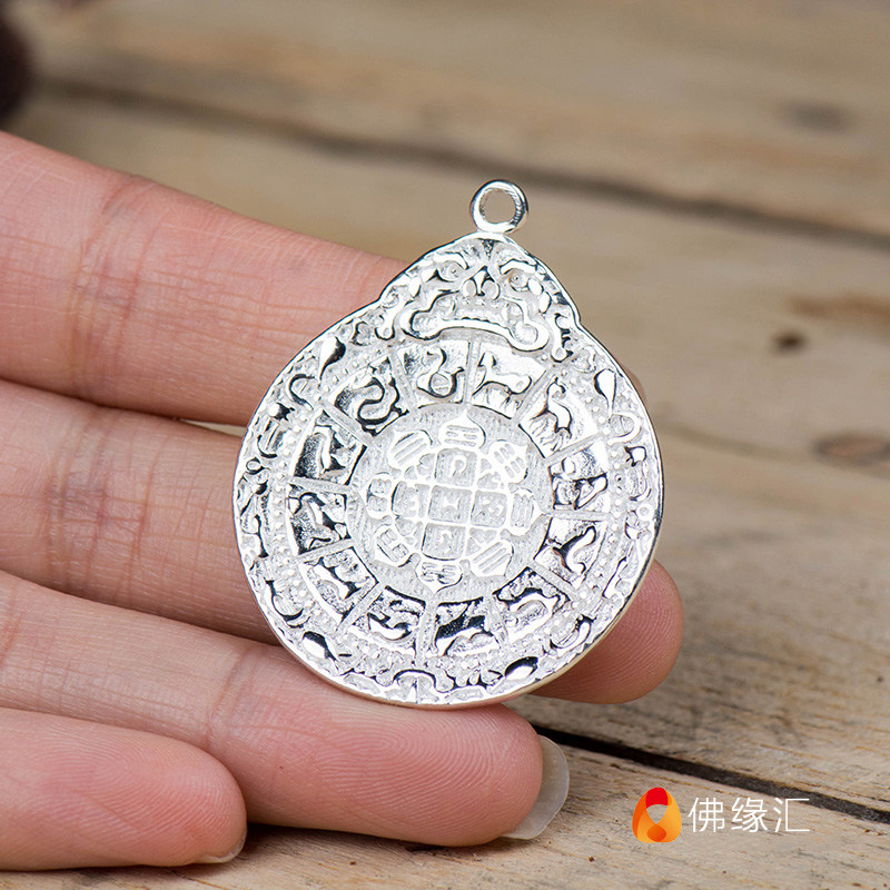 Tibetan Ornaments 925 Pure Silver Wench Nine Palace Gossip Pendant Pendant accessories Accessories Buddha's Zodiac Waist Card Pendant