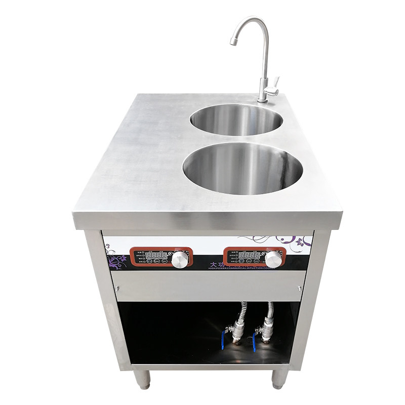 Henganda commercial induction cooker 5000W double-head cooking noodle stove boiled dumpling stove pot two-end stove 5kw with water inlet and outlet