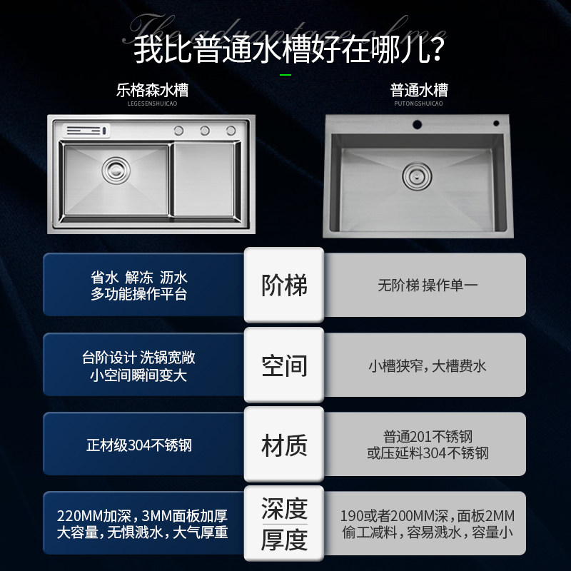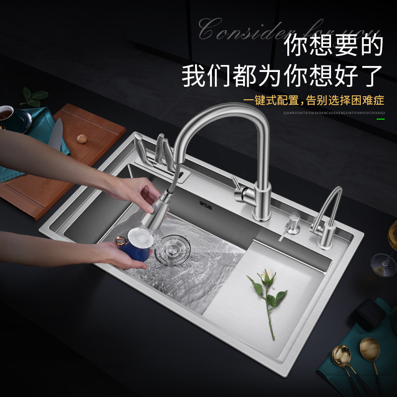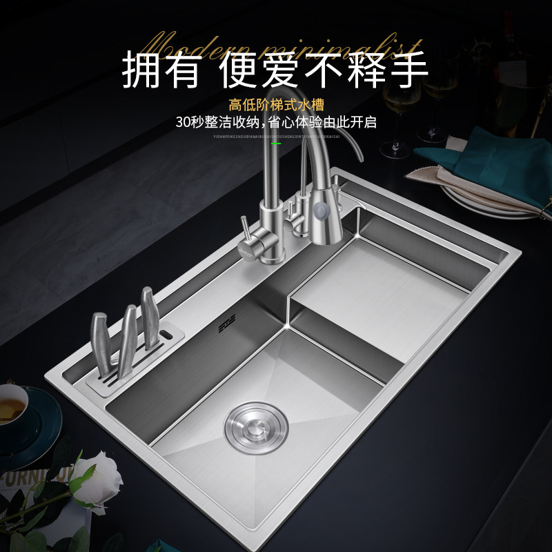 Stepped sink kitchen high and low step wash basin multifunctional handmade large single sink dishwashing sink 304 stainless steel