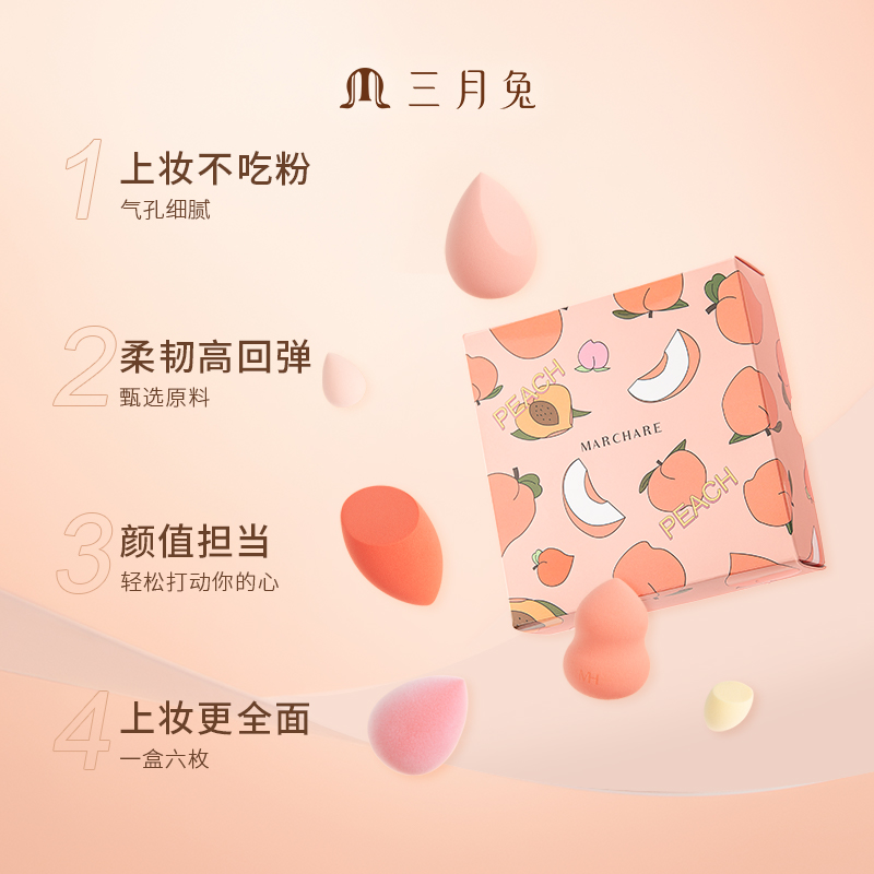 March RabbitMarch Rabbit Beauty Eggs Sweet Out Peach Makeup Powder Puff Velvet Makeup Eggs Soft and Do Not Eat Powder 6 Boxes