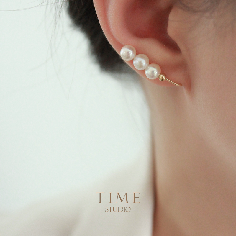 Original earrings without pierced earrings earbone clip earrings high quality natural three pearls elegant intellectual temperament earrings for women