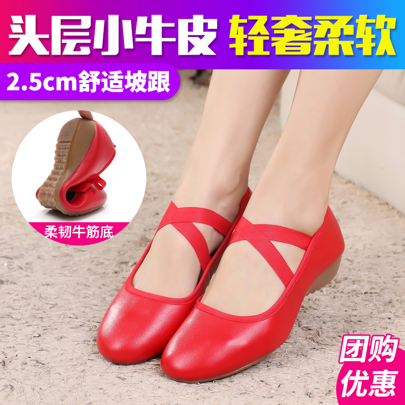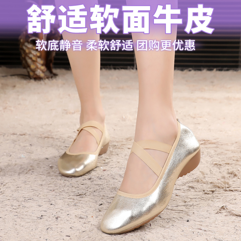 Genuine Leather Square Dance Shoes Low Heel Soft Bottom Dancing Shoes Bull Leather Bull Gluten Flat-bottomed Dancing Shoes Morden Dance Social Dance All Season