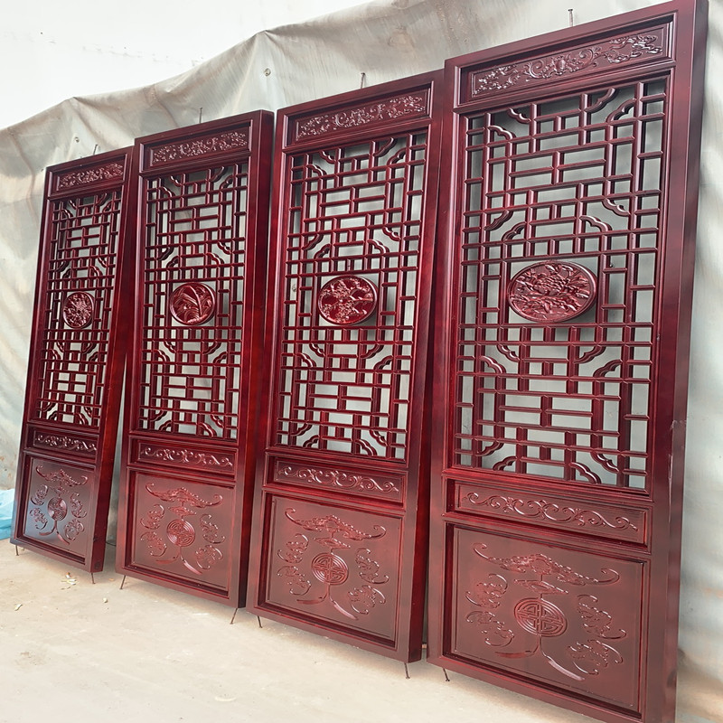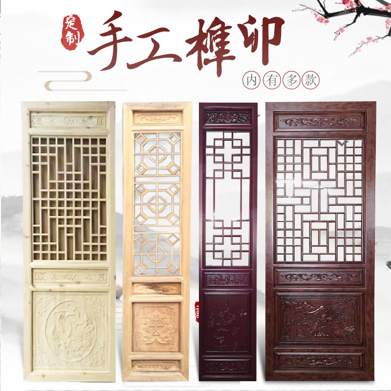 Dongyang wood carving antique doors and windows Solid wood lattice New Chinese tenon and mortise window retro spot screen partition customization