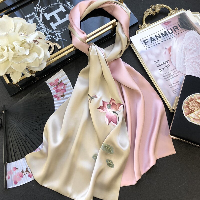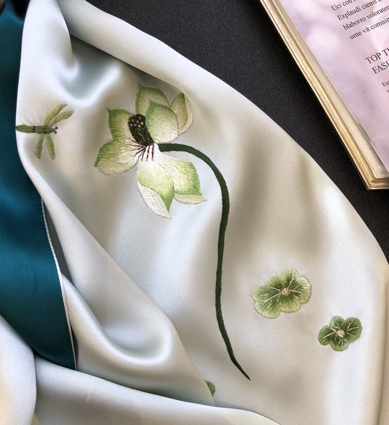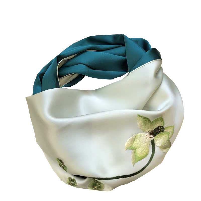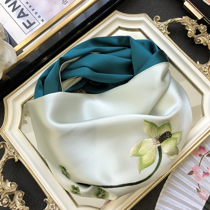 Festive Gifts Su Embroidered Lotus Embroidered Double Layer Genuine Silk Scarlet Female Hand Embroidered Mother Mulberry Silk Scarves
