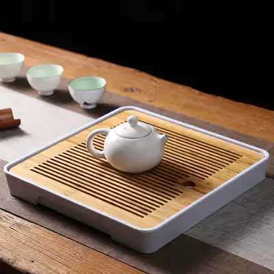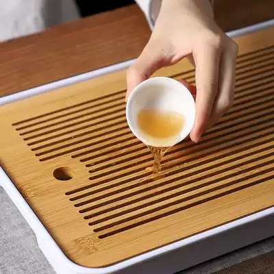 Tea tray bamboo household tea table living room drain tray tea set water storage small tea tray office solid wood rectangular tray