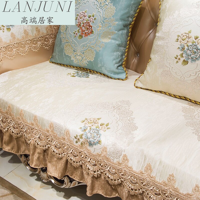 European-style sofa cushion sofa cover four seasons universal fabric high-end luxury non-slip American leather chaise longue cushion custom