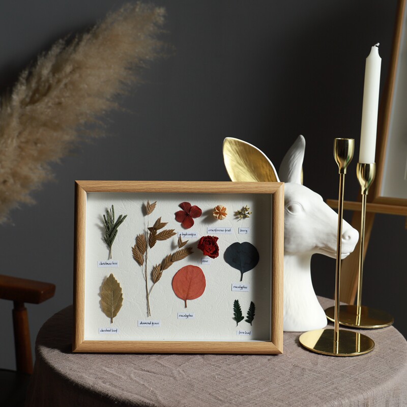 Three-dimensional photo frame with glass hand - made dried flowers and withered leaves plant specimen decorative painting hanging painting vintage flowers specimen painting