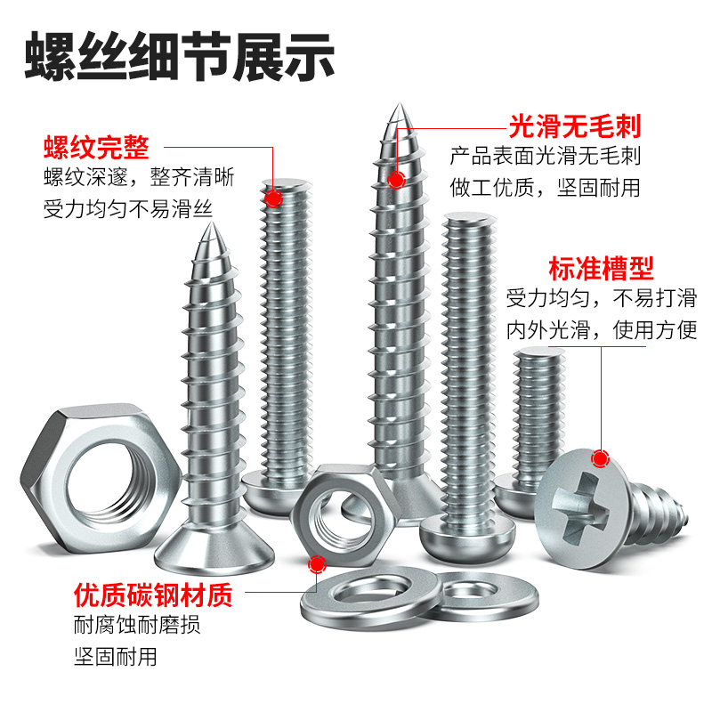 Round head phillips screw Nut gasket Machine wire nail screw bolt screw M3M4M5M6 self-tapping screw Household set