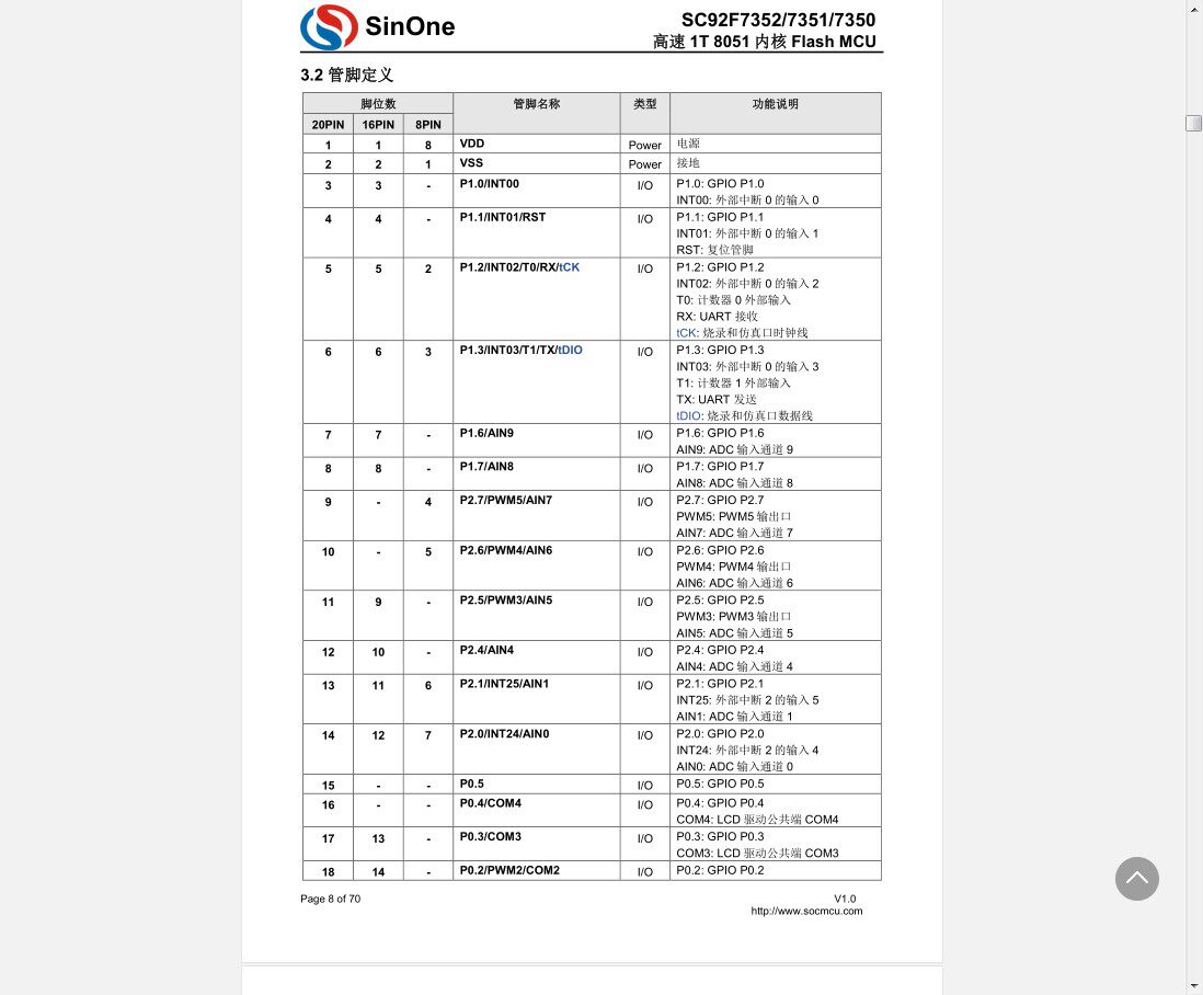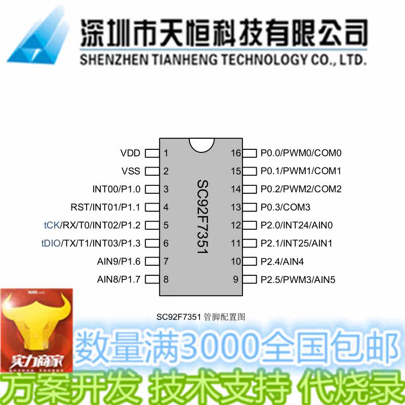 Flash 256BSRAM 8K single chip EEPROM 12bit ADC UART PWM SC92F7351M16U