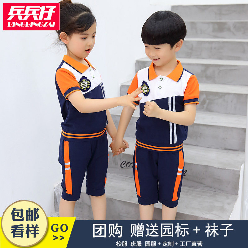School uniforms for elementary school students, kindergarten uniforms, teachers' short-sleeved summer clothes, summer class uniforms, children's sports suits, graduation customization