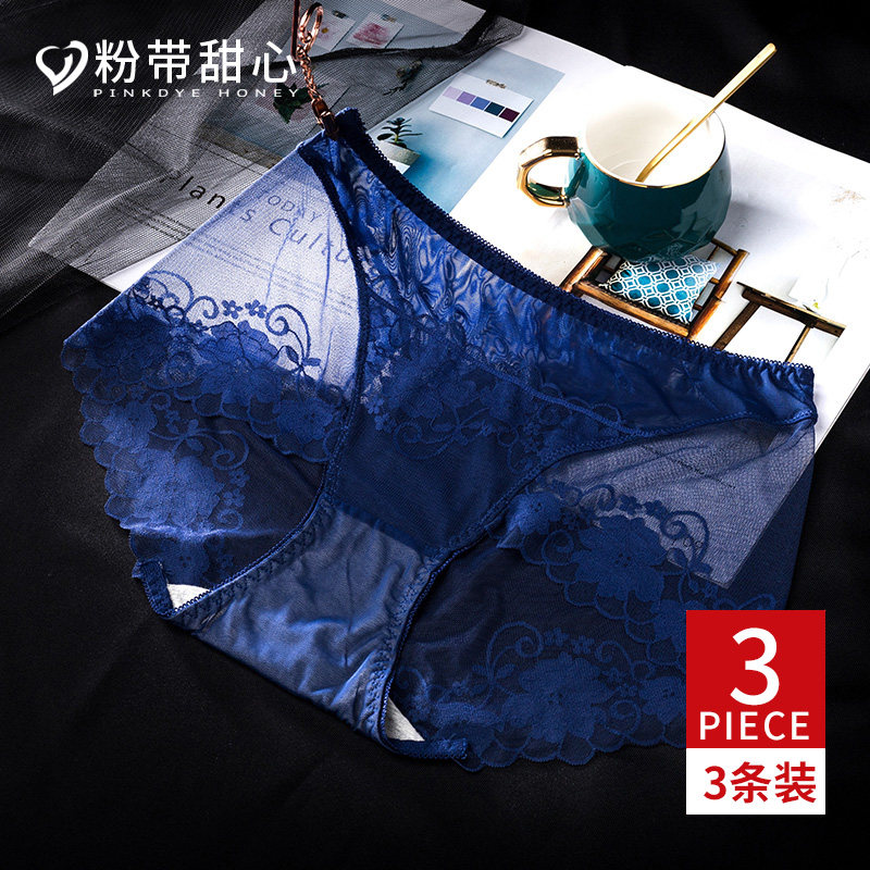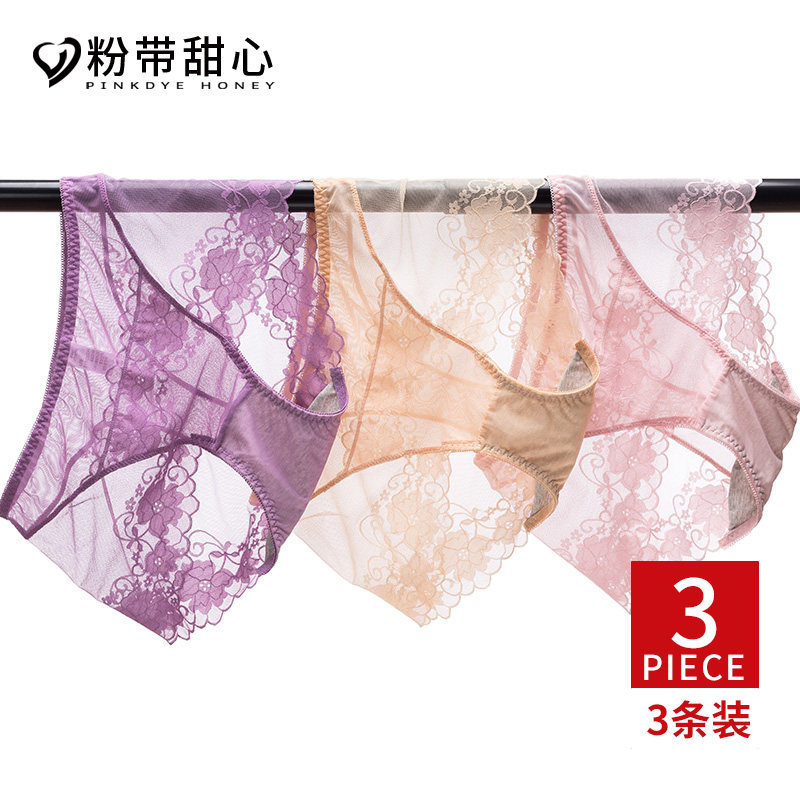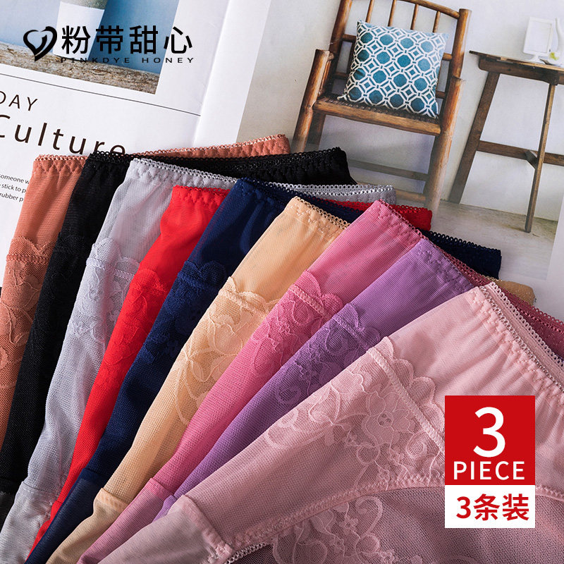 Sexy Briefs Female Lace Pure Cotton Antibacterial Crotch Breathless Apostle Comfort No Marks Mid-Waist Ice Silk Lady Pants Head Triangle