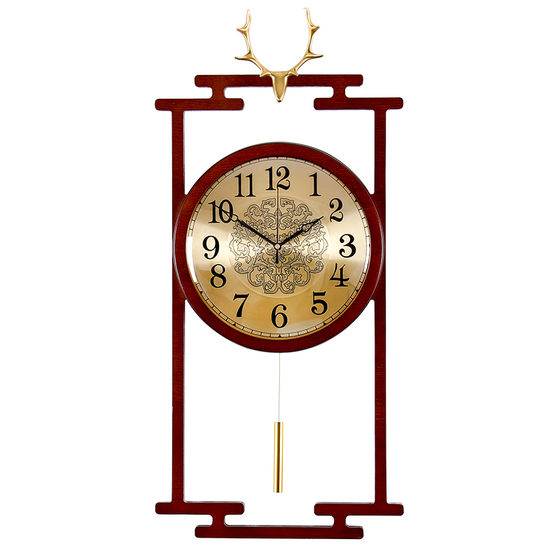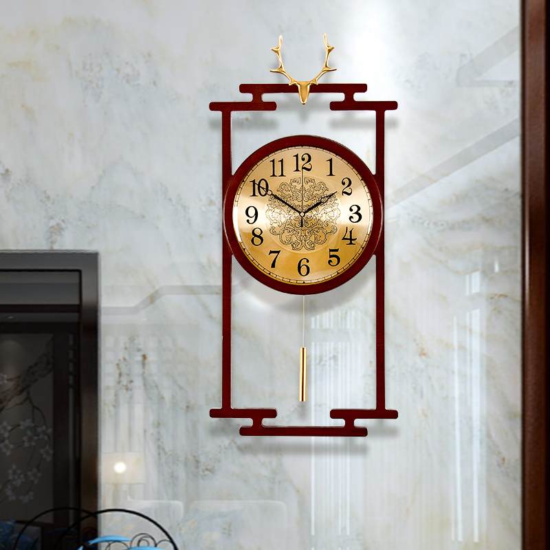 New Chinese light lavish deer head hanging bell table living room mute home clock hanging wall Chinese wind atmospheric creative quartz clock