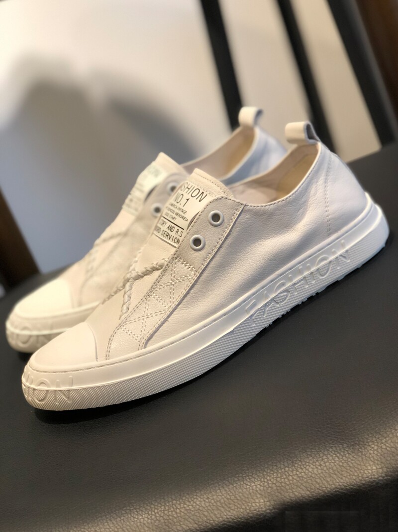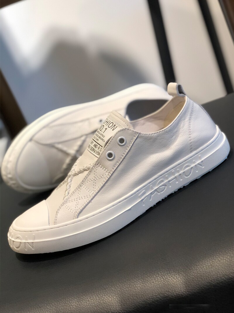 European station men's shoes 2022 spring new Korean version all-match slip-on shoes leather breathable small white shoes men's fashion
