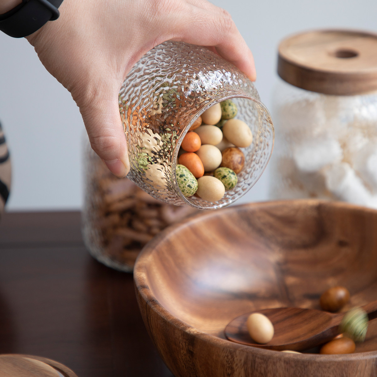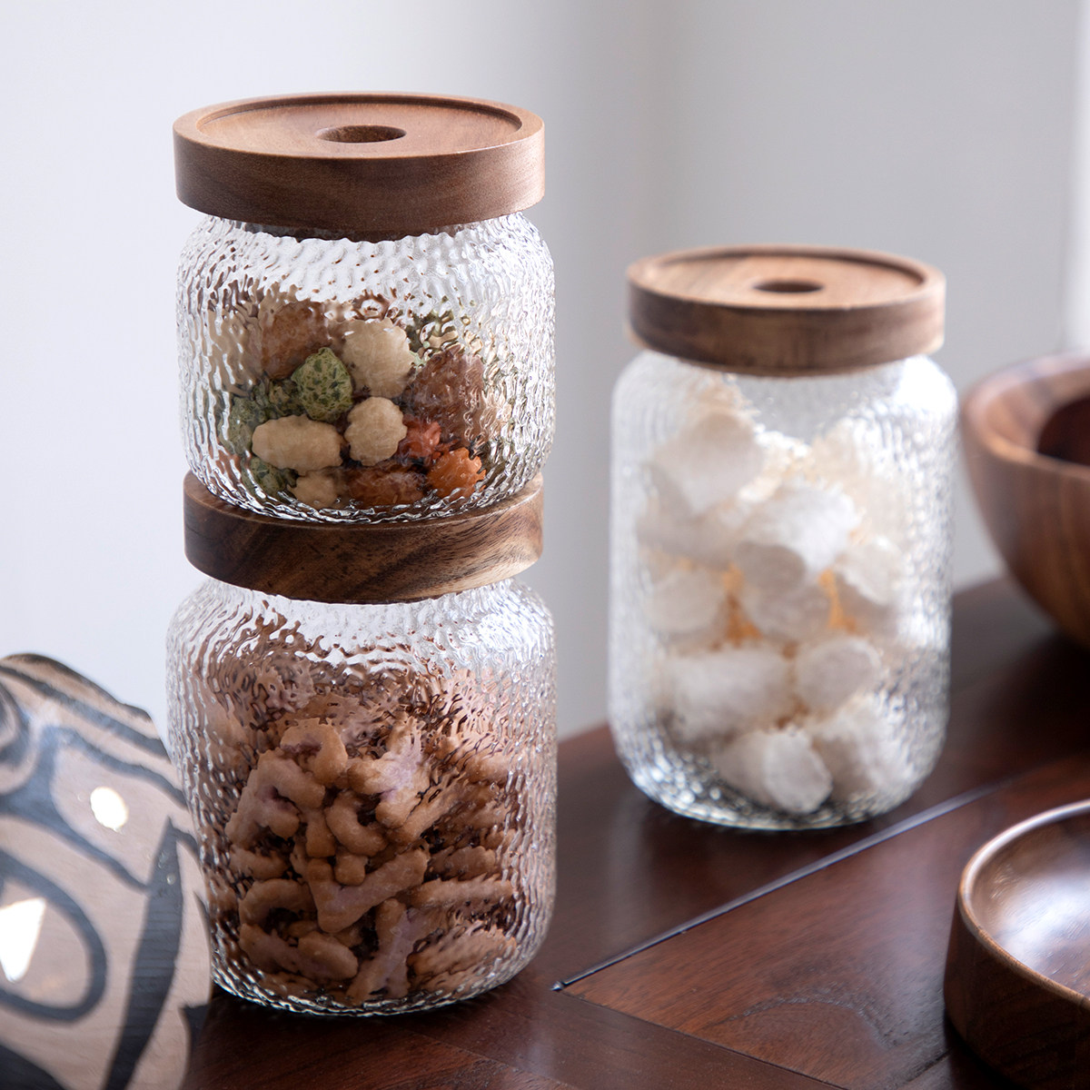 Acacia wood hammer grain storage tank Small (height 9 2cm Acacia wood hammer grain storage tank Medium (height 12 4cm Acacia wood hammer grain storage tank large (height 14 8cm