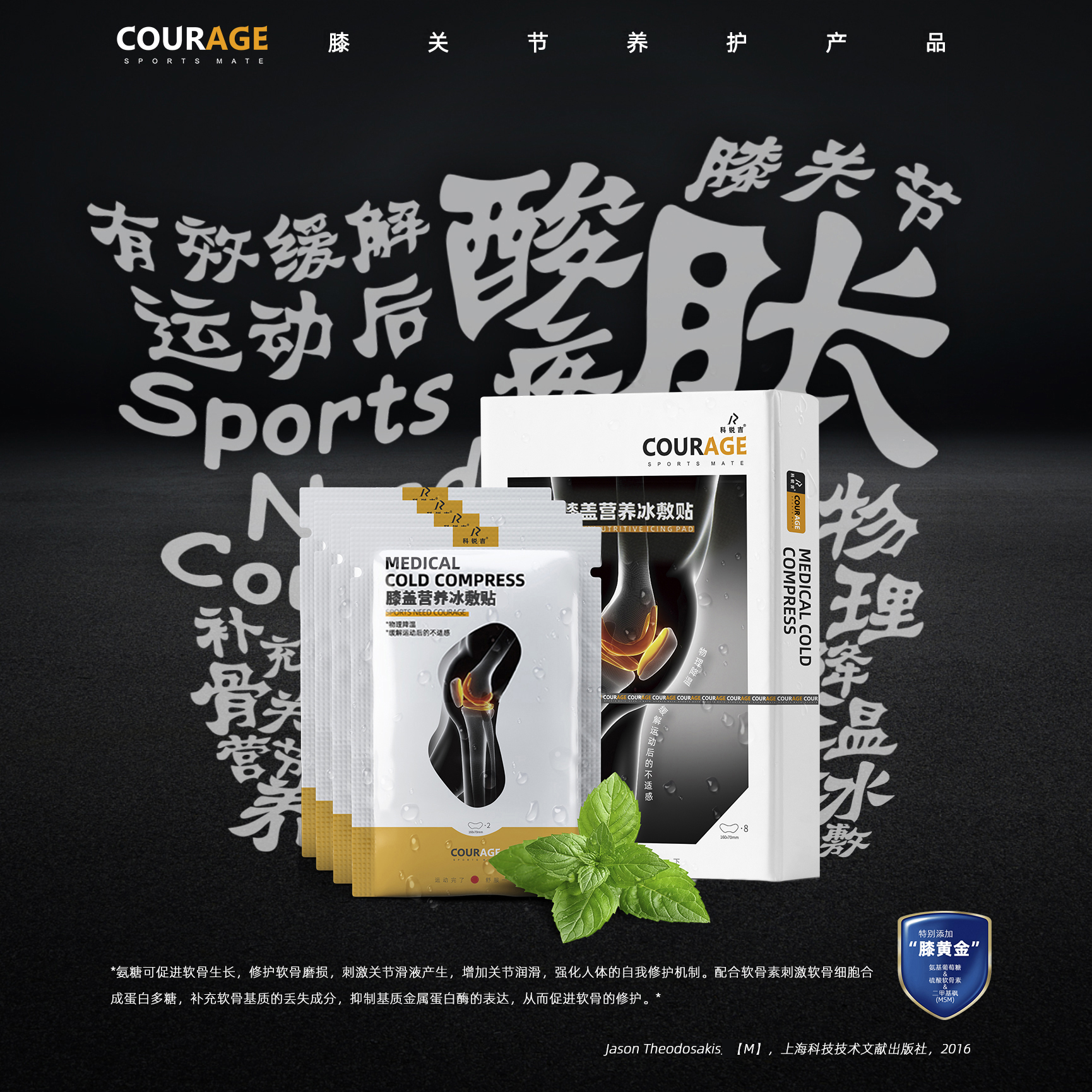 COURAGE Corige Knee Nutrient Ice Application Knee Gold Basketball Running Sports Injury Relief Repair Patch