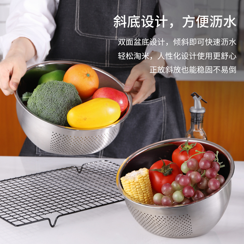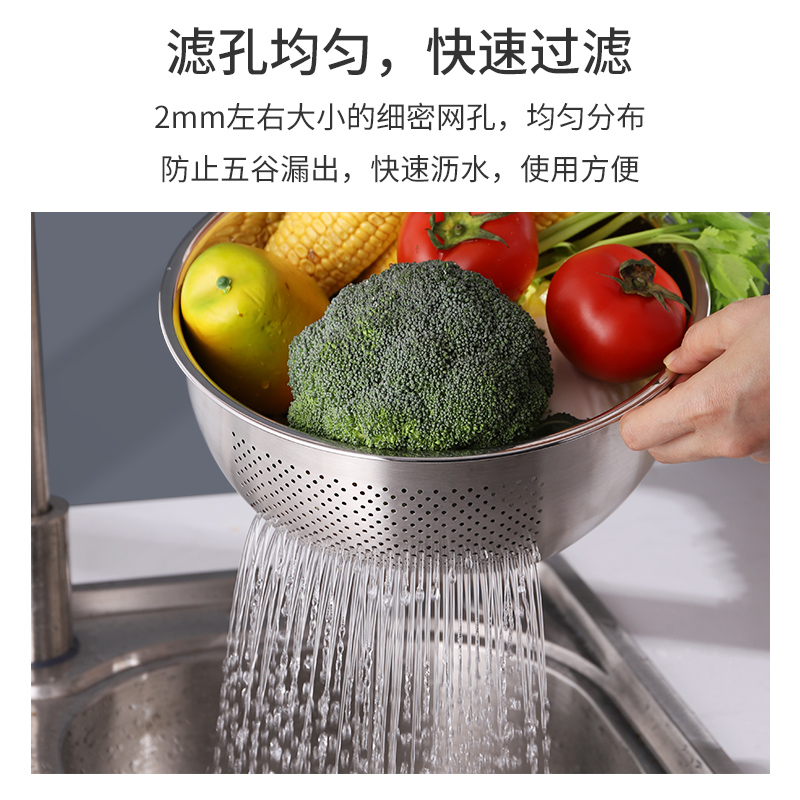 Home Small Two 304 Stainless Steel Naughty Rice Wash Rice Sieve Wash Basin Theiner Home Kitchen Wash Vegetable Drain Water Filtration Basket