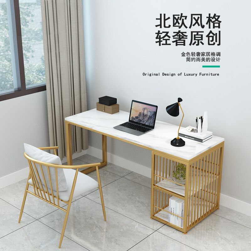 Nordic minimalist modern light and luxurious wind desk Home Iron Art Desk Marble Writing Desk Book Room Desk-Taobao