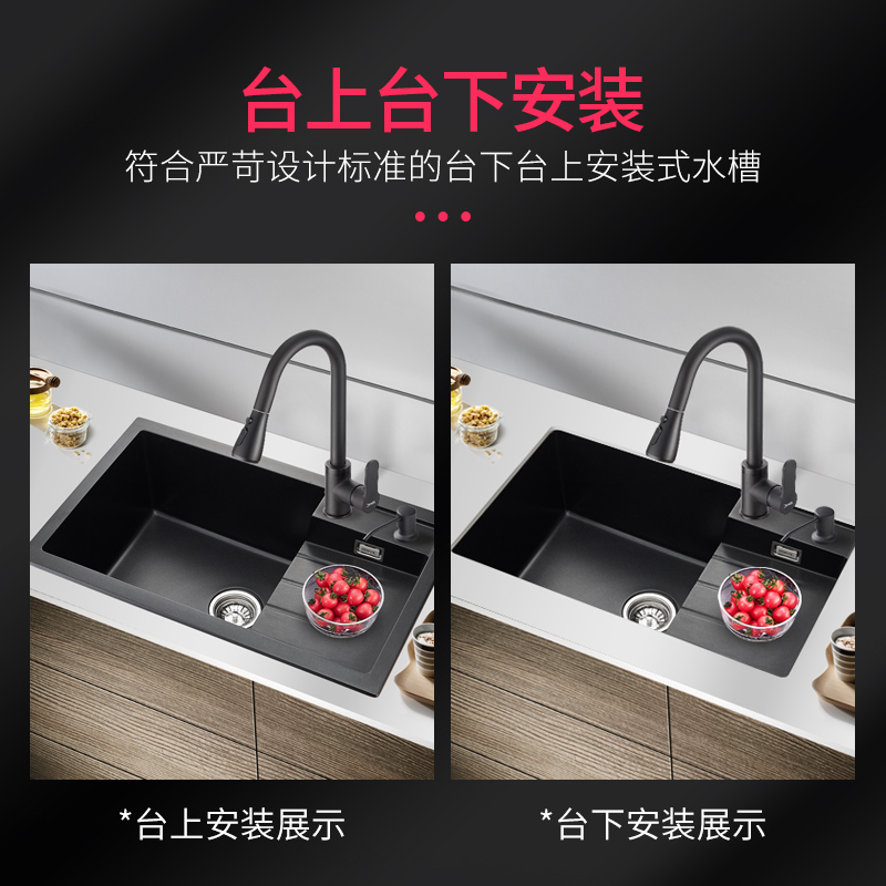 Black quartz stone sink large single sink granite washbasin kitchen undercounter basin washbasin high and low groove stepped