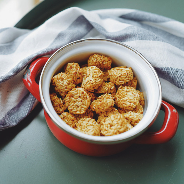 Happy Food Feast New Shrimp Noodle Ball a bite of a small instant noodle