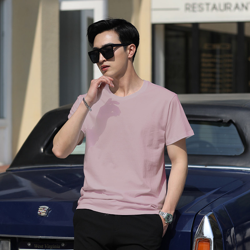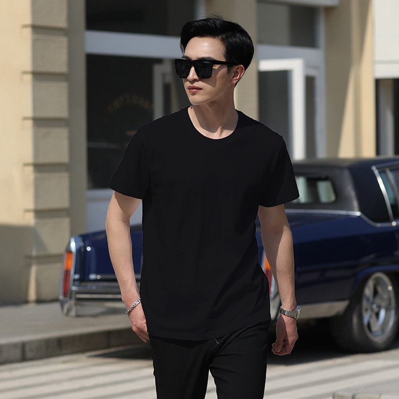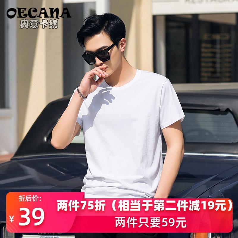 OECANA men's new men's short-sleeved men's t-shirt round neck solid color loose white cotton T-shirt base shirt men