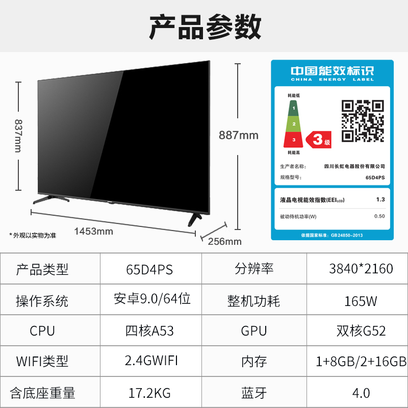 Long-iridescent 65D4PS 65-inch Smart Voice Full Screen Ultra High Qing 4K pitching screen flat LCD TV 55