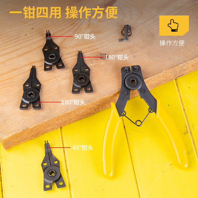Deli five-in-one replaceable head retainer pliers internal and external dual-use multi-function spring pliers set hole shaft retaining ring pliers