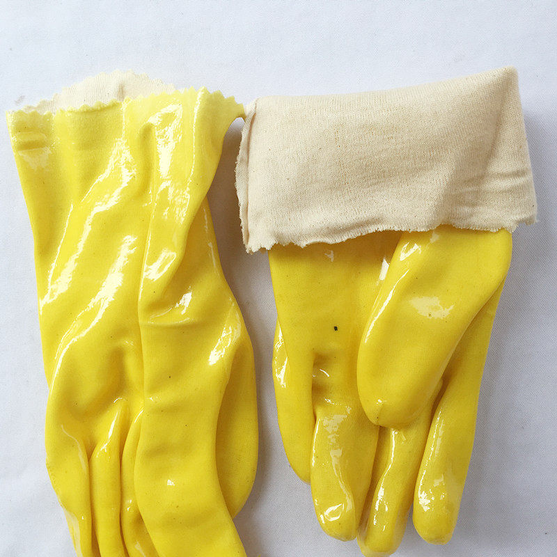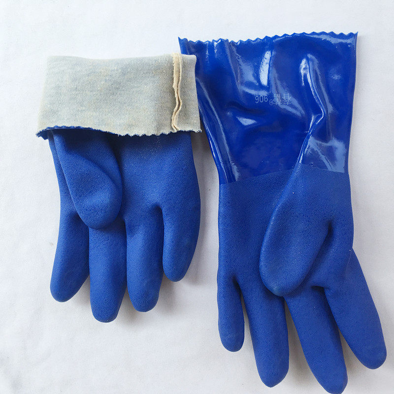 Thickened PVC Blue Immersion Plastic Oil Resistant Gloves Cotton Lining Dip Plastic Resistant Acid Anti Slip Grinding Industry 10 Double