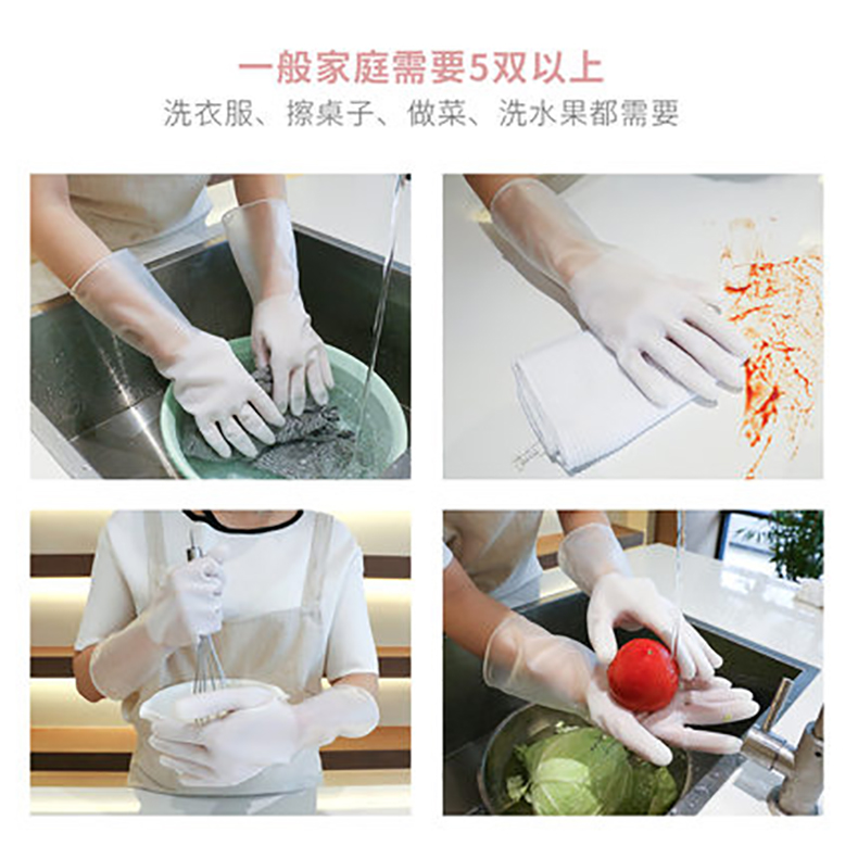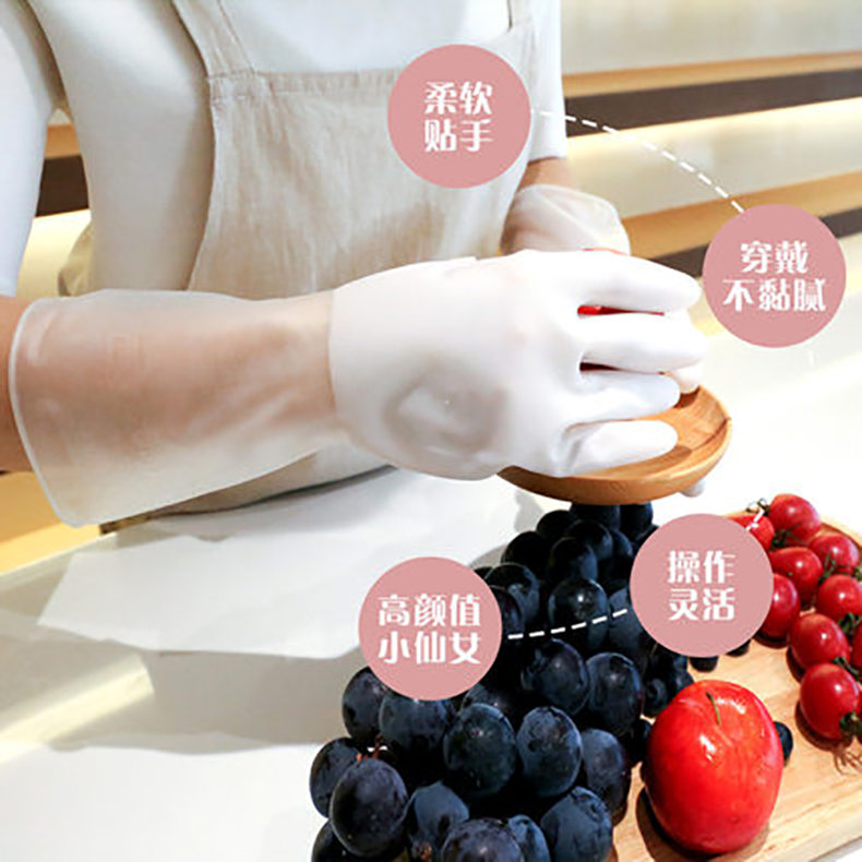 Kitchen dishwashing gloves female brushing dishwashing dishwashing rubber leather household waterproof and durable handcuff cleaning and working
