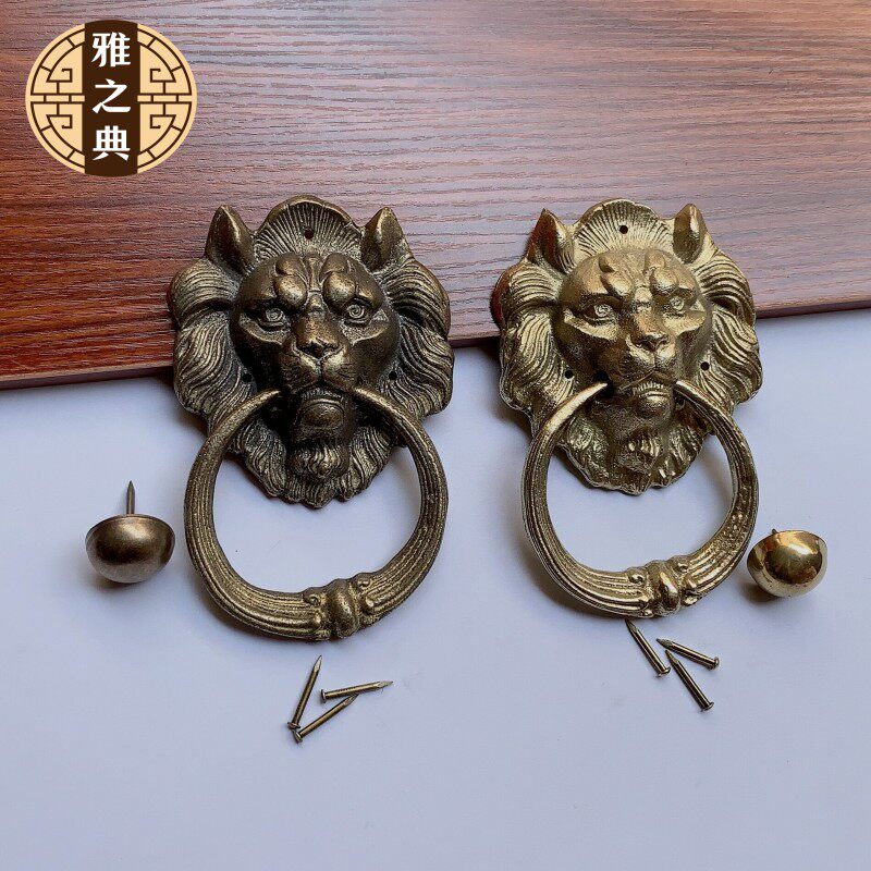 Retro wooden door pull ring imitation ancient pure bronze beast head door ring Chinese lion head tiger head handle Kirin large door handle