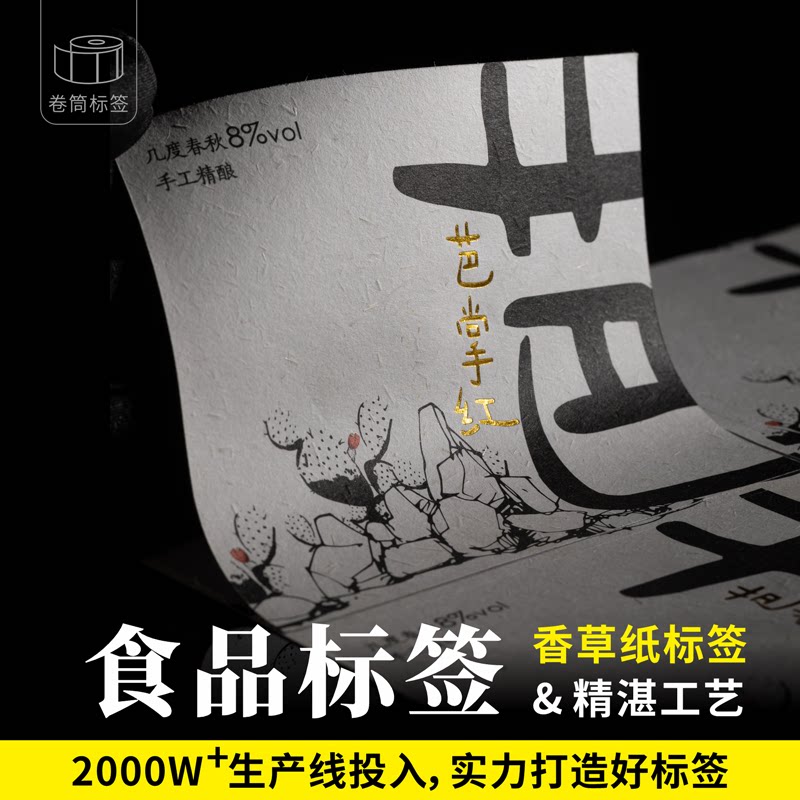 Earth paper self-adhesive custom fiber texture label printing custom shock sticker order rice label production