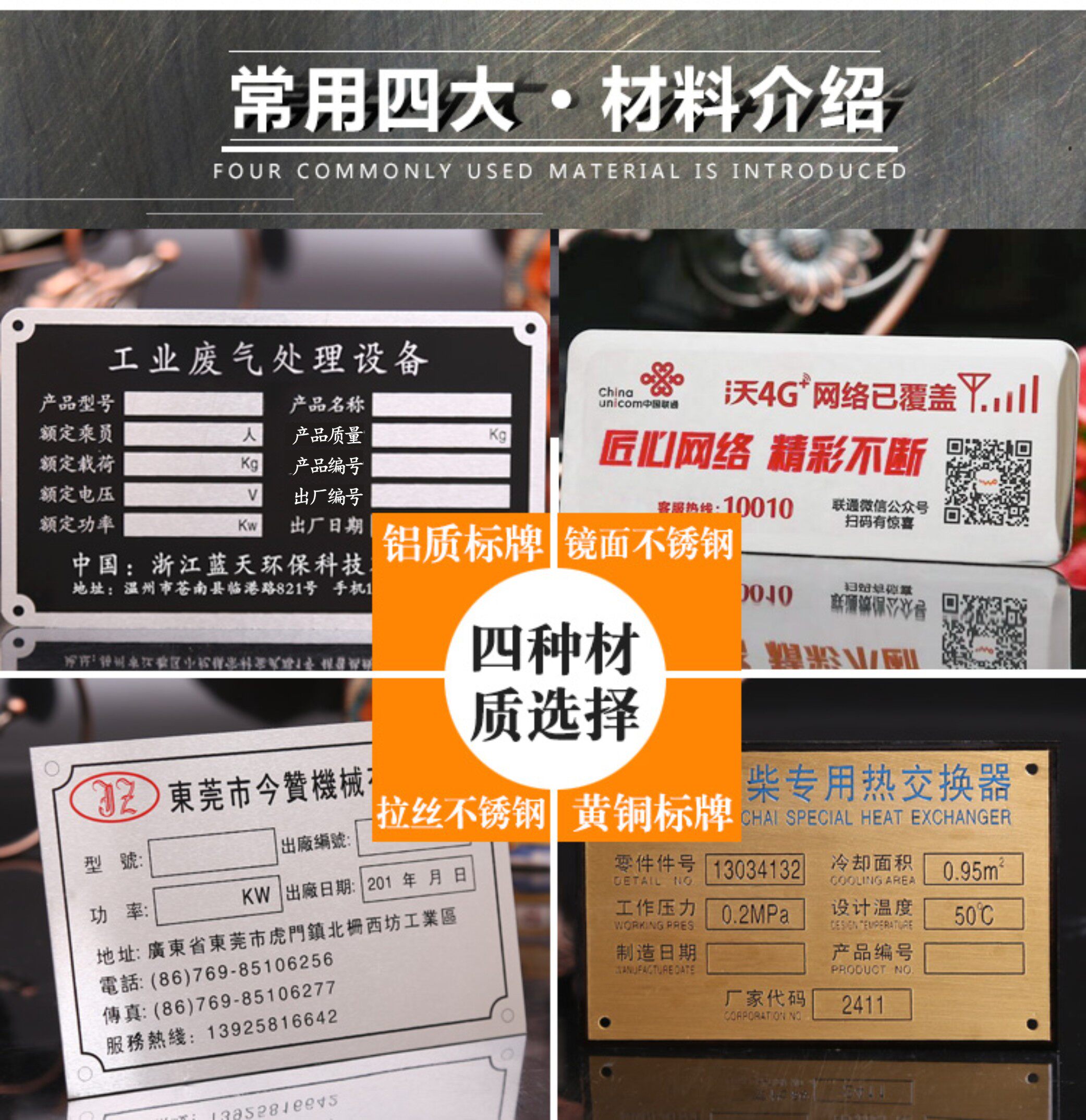 Manufacturer mechanical equipment aluminum nameplate nameplate set for stainless steel metal corrosion signage bronze identification card making