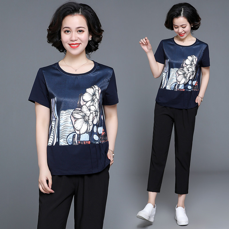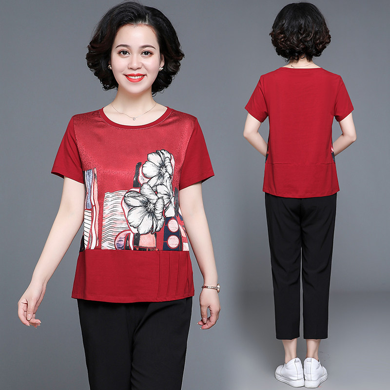 Mother summer suit Western-style suit 40 years old 50 middle-aged women short sleeves small shirt large size cover belly middle-aged and elderly sportswear