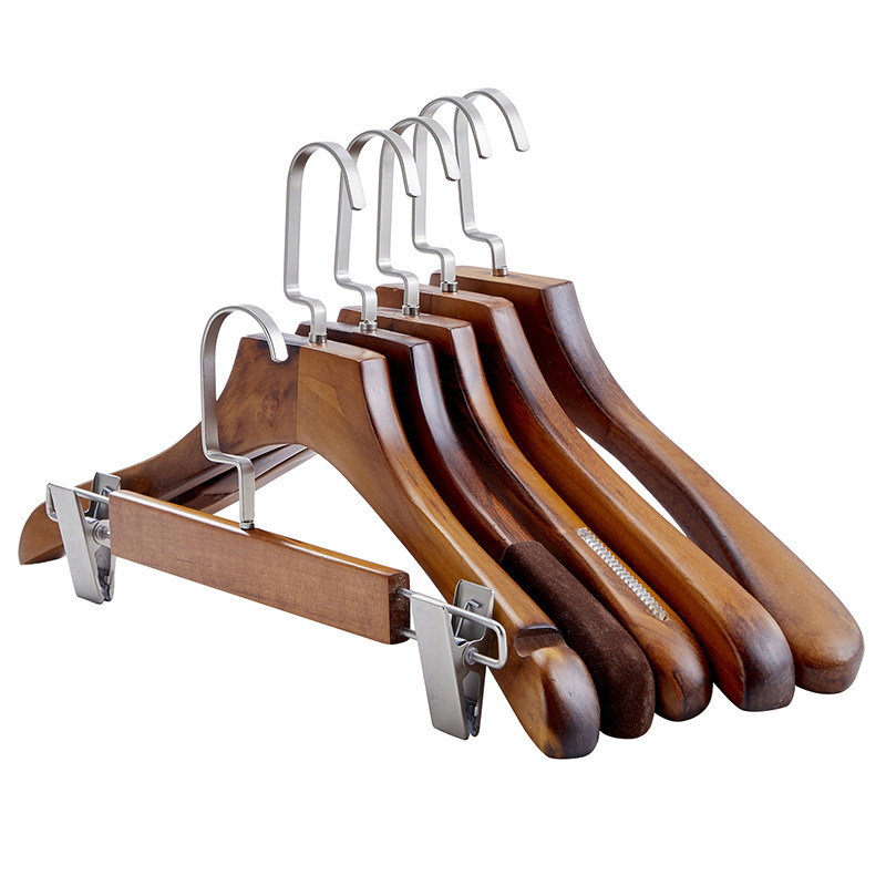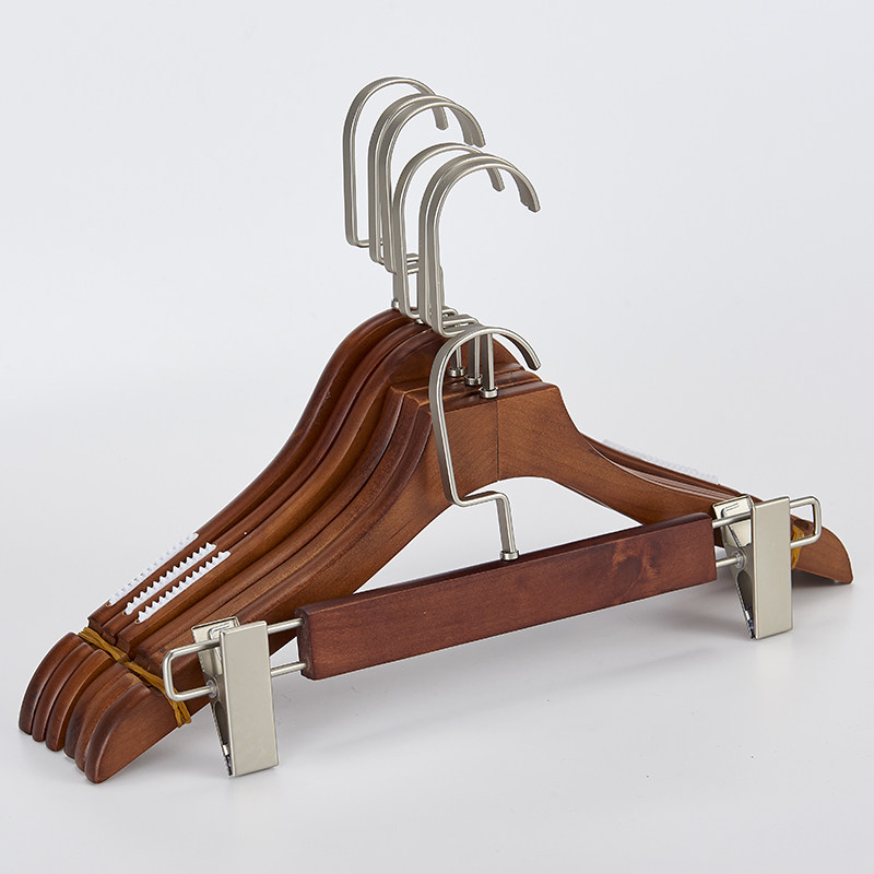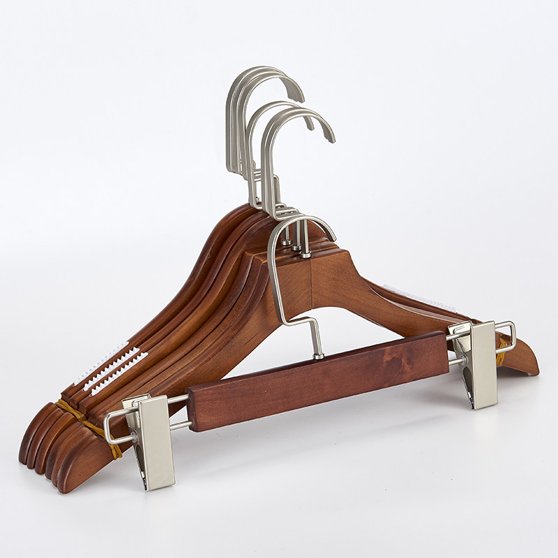 Clothing Store Commercial Wooden Hangers Unisex Adult Children's Clothing Non-slip Solid Wood Drying Hanger Trouser Clip No Trace Home
