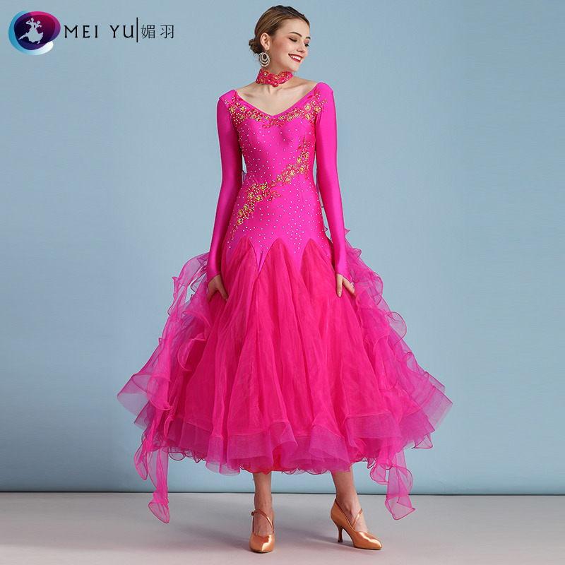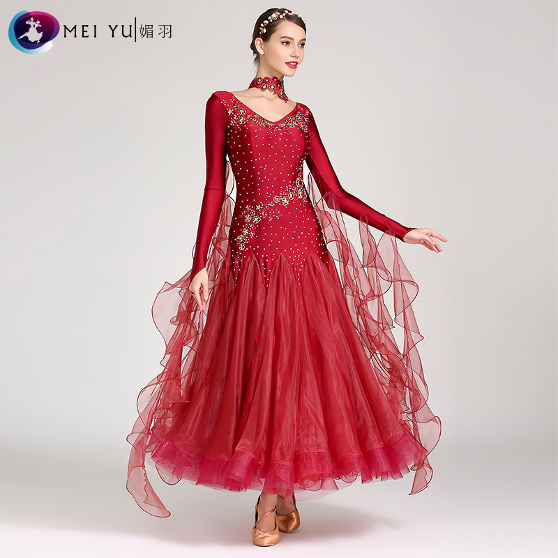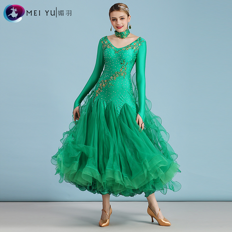 Fawn down Morden dance dress rehearsal for national standard Dancing dress competition Ocean dress New inlaid drill Morden dress HB195