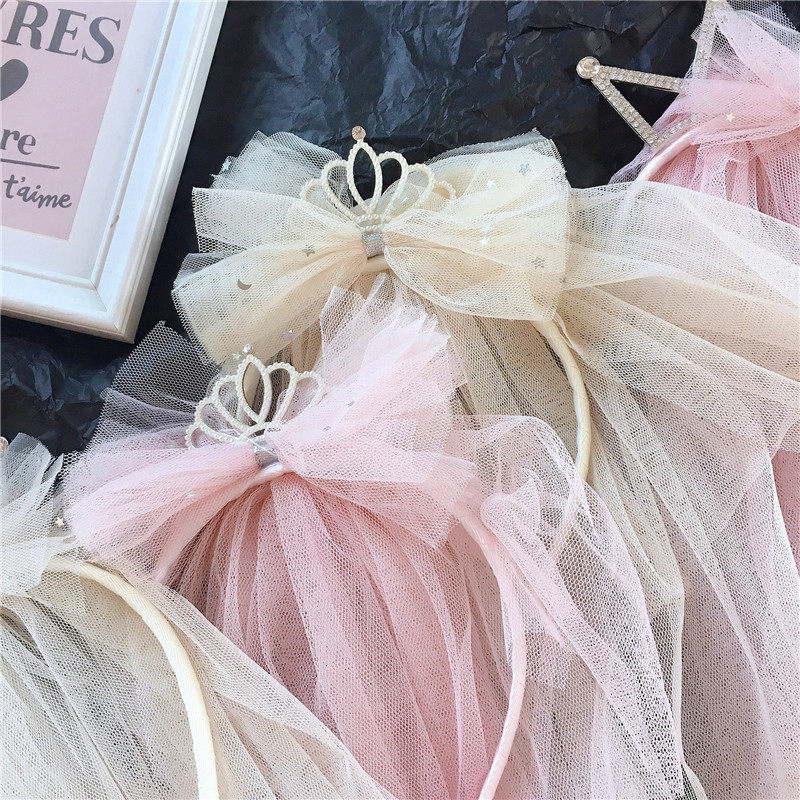 Sails South Korea New Bow Tie Crown Mesh Yarn Hair Stirrup Wedding Flower Boy Hair Stirrup Girl Head Decorated Princess Hair Accessories