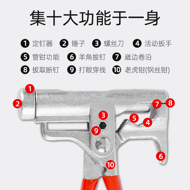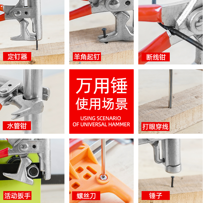 Universal hammer multifunctional integrated hammer pliers pipe pliers wrench iron nail steel nail cement wall nail tool universal hammer