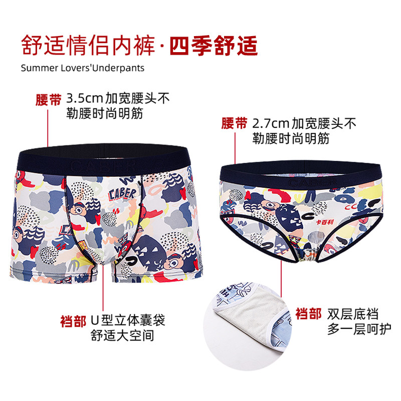 caber carabiliary couples underwear cartoon cute ice silk modell cotton women triangle underpants male flat corner summer