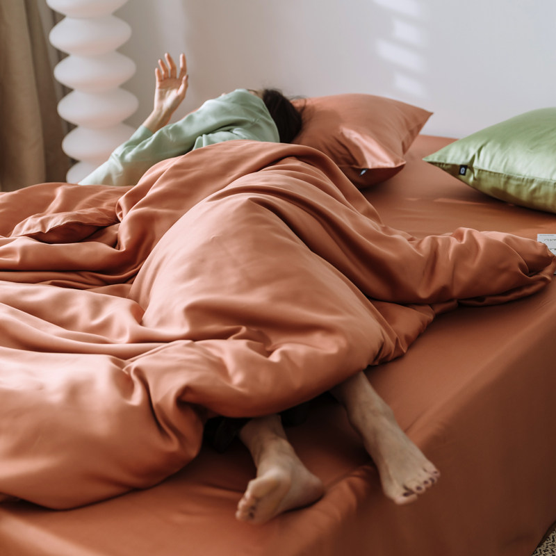 60 Tencel four-piece set Nordic solid color button-type single quilt cover pillowcase bed sheet cool plain simple