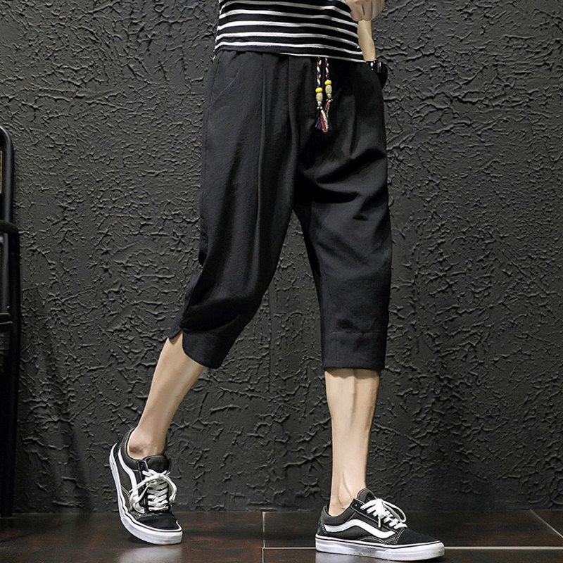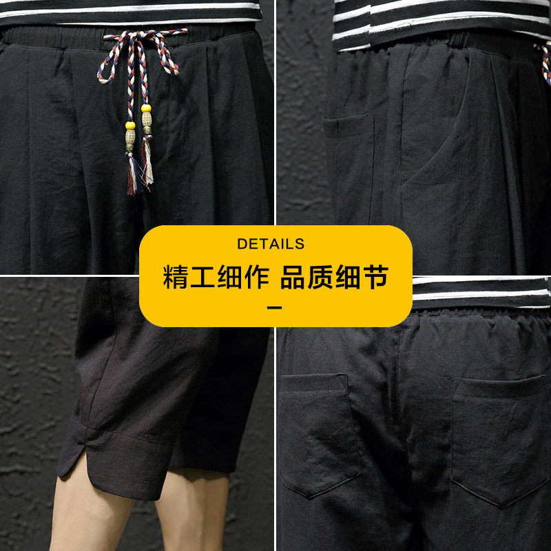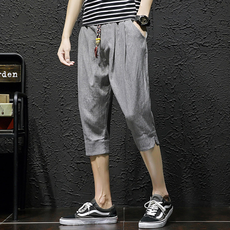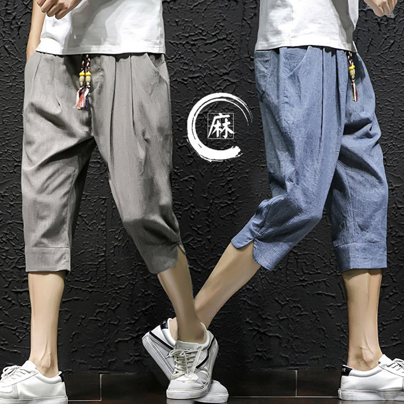 2022 New Men Shorts Summer Linen 7 Pants Ins Tide Cards 50% 50% 50% Pants 7 Points Casual Summer Fit Pants