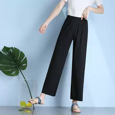 2021 spring and autumn new ice silk pajamas women's summer pants thin section can be worn outside large size wide pants anti-mosquito pants air conditioning pants