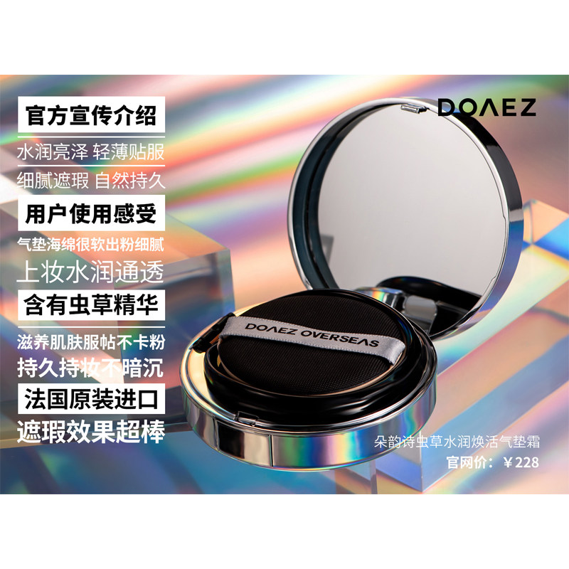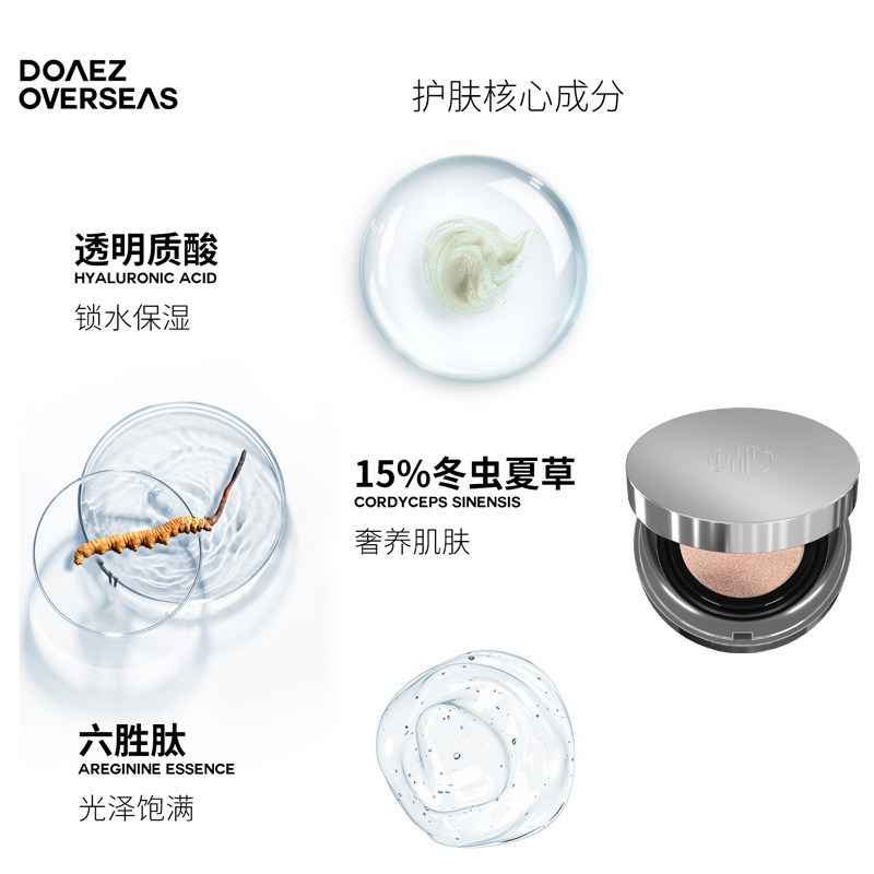 DOAEZ Rhymes Cordyceps Cushion Cream Foundation DD Moisturizing and Revitalizing Pure French Imports Free Replacement Core 15g*2