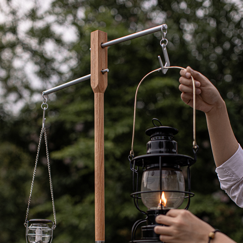 TNR Outdoor Camping Vintage Solid Wood Wrought Iron Bracket Three Sections Vintage Marquee Kerosene Lamp Camp Light Stand Long Light Pole