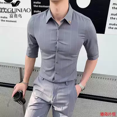 Fugui bird suit men summer seven-sleeved shirt ankle-length pants men Korean tide slim handsome fashion casual set