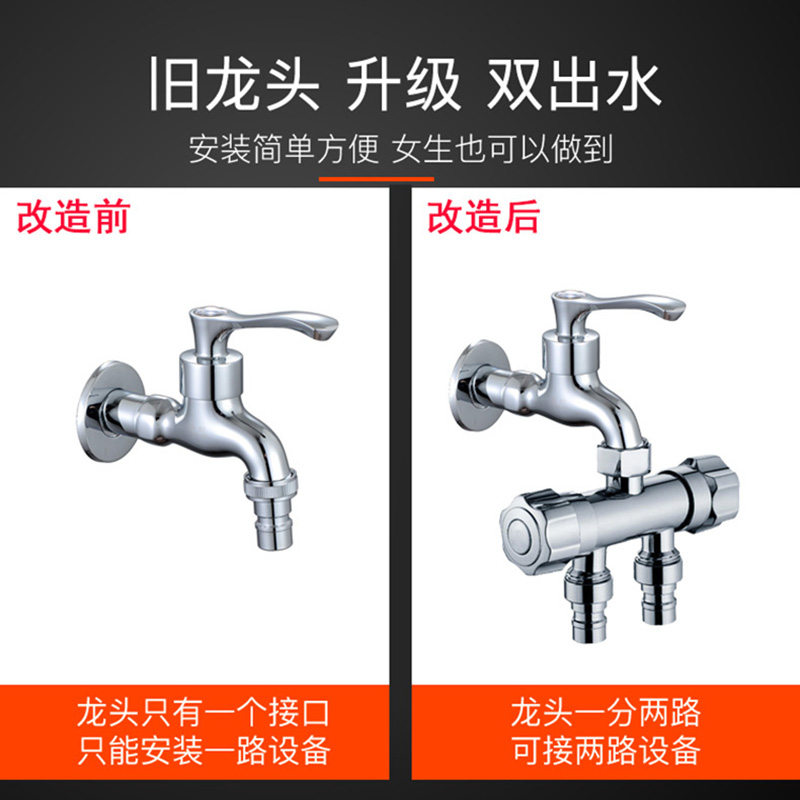 Multifunction splitter 10% Two-head-in-two-out washing machine tap Three-way water distributor Double water use