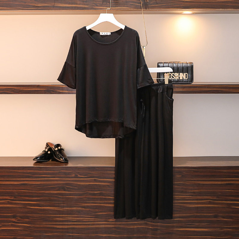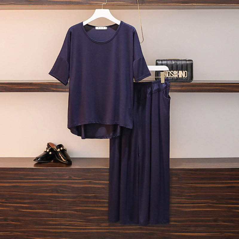 Pajamas women's summer short-sleeved trousers wide-leg pants suit modal cotton large size fat MM home clothes loose plus fat