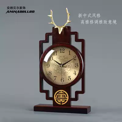 Lutou new Chinese clock clock Chinese home living room desktop desktop large clock wooden imitation retro ornaments
