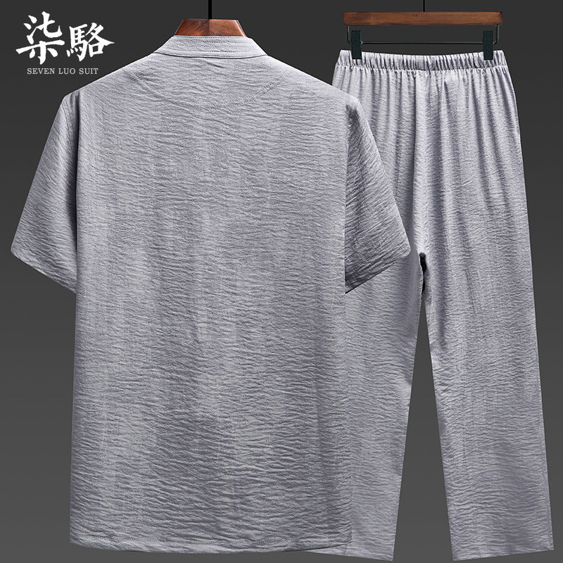 New middle-aged Tang suit male grandpa summer short-sleeved suit Chinese style dad clothes old man summer clothes