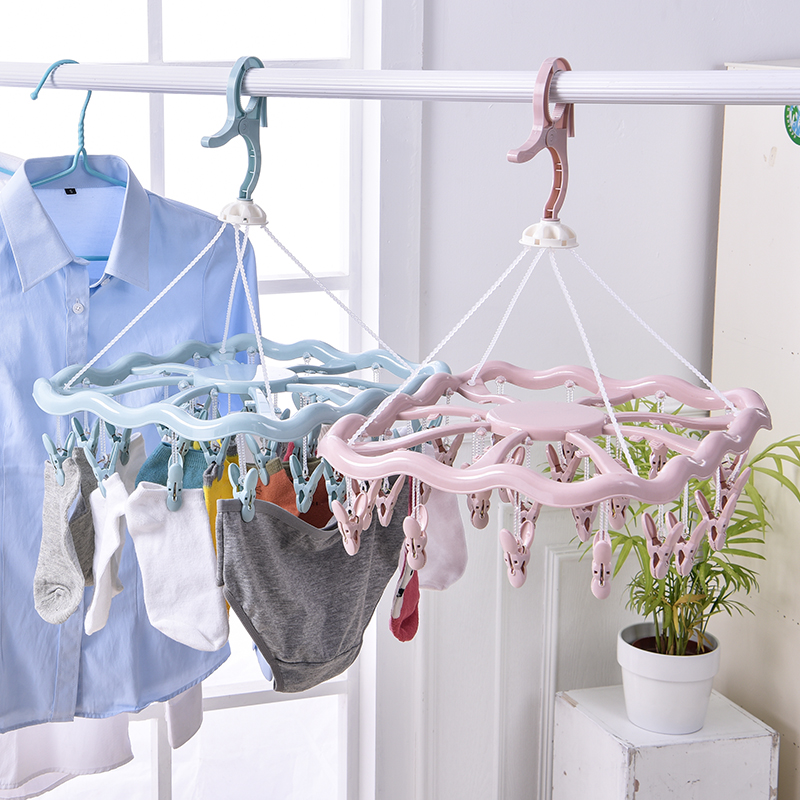 Round clothes rack hanging clothespin Underwear socks drying clip Plastic multi-clip household clothes rack storage artifact