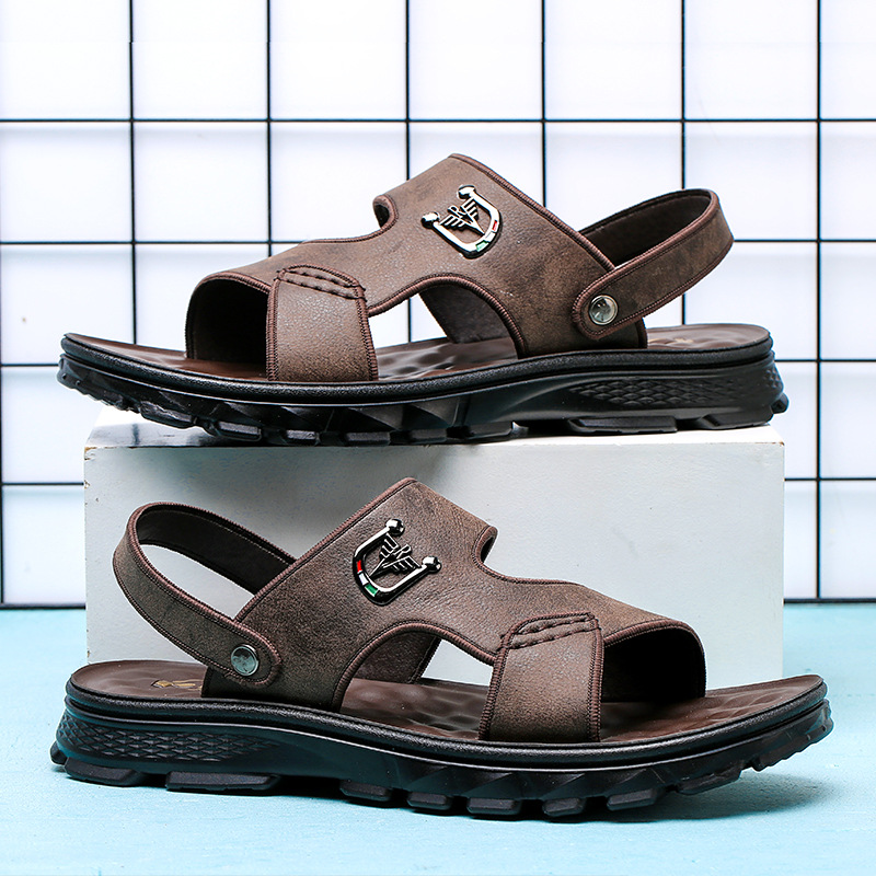 Sandals men in 2023 new anti - slippery soft - solid beach shoes worn dual - use retro - leather sandals outside the summer